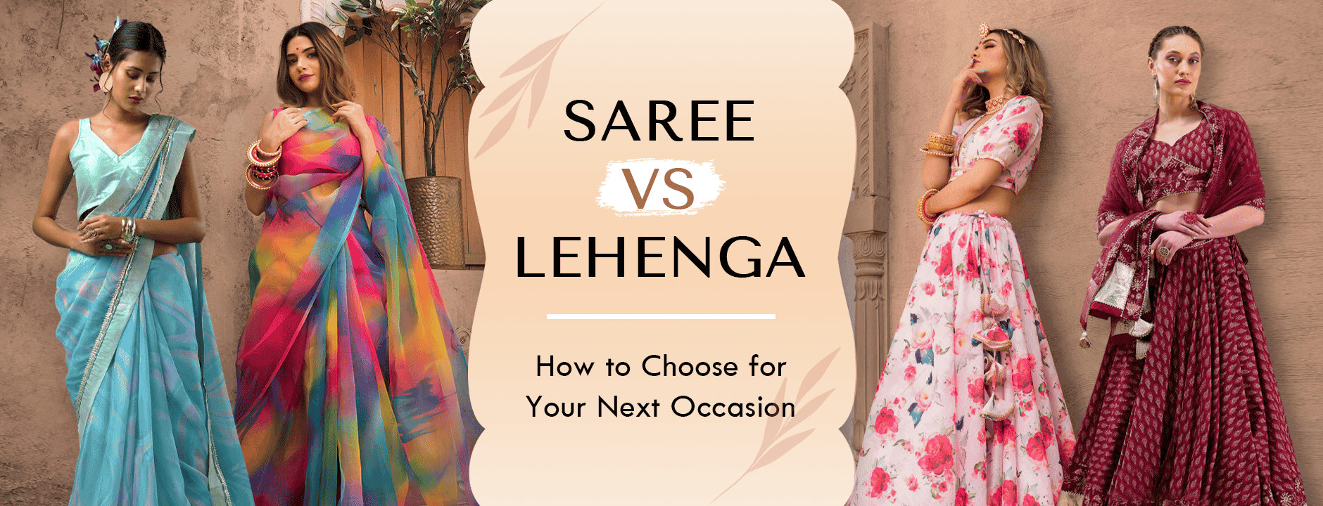 Both are lovely, elegant, and culturally rich; however, when deciding what to wear for that special occasion, both sarees and lehengas can be a fashion dilemma. Do you choose the elegance of a saree and its regal drape or the glamour of a lehenga and its festivities?