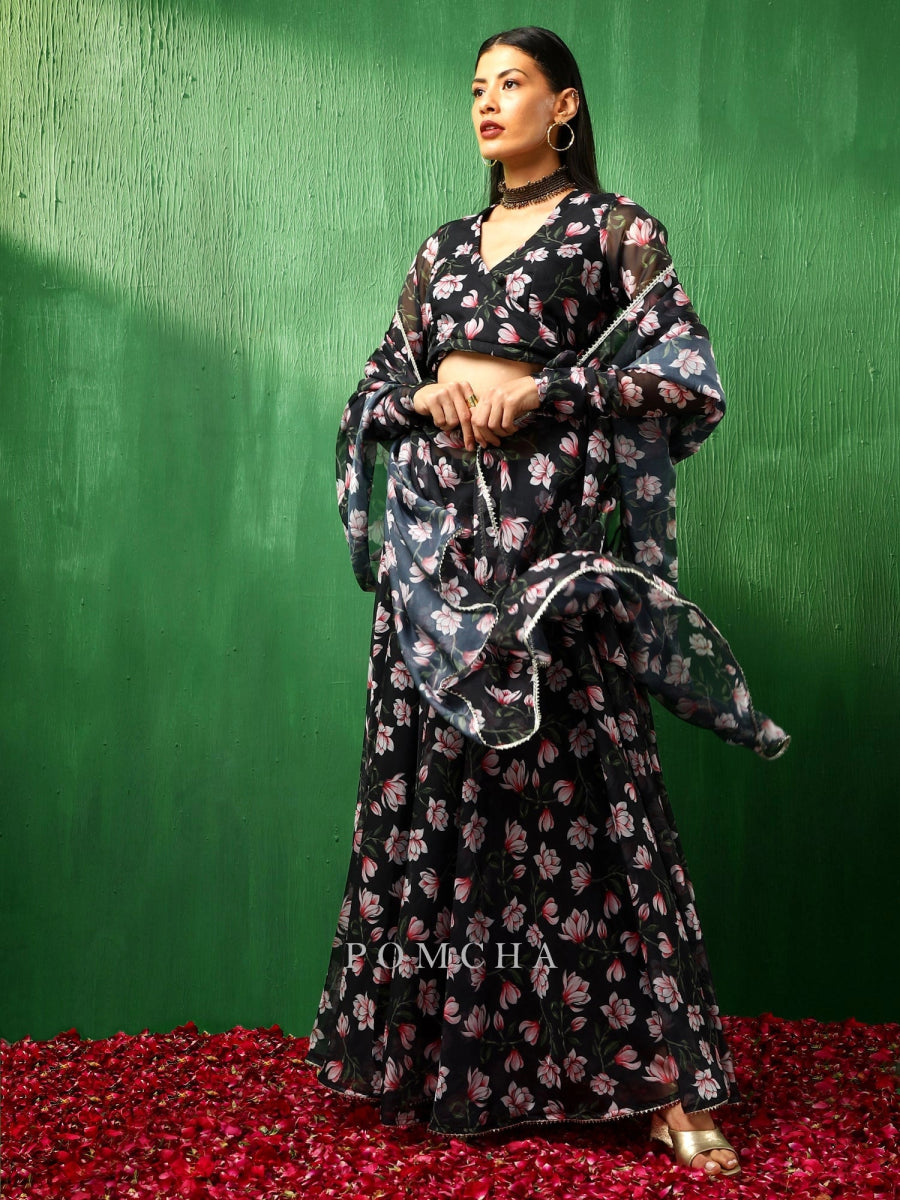 ADAA PINK LOTUS ORGANZA LEHENGA SET - Pomcha Jaipur
