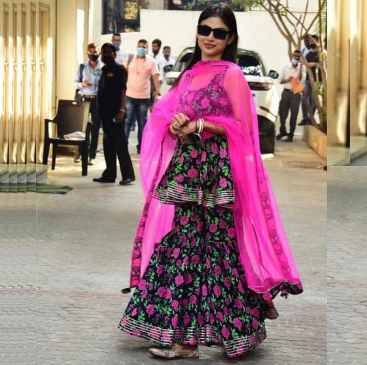 Product Highlight: Gotta lace work at bottom of sharara , top ,sleeve's less , and beautiful tassels at the back, gotta lace &fabric patch  work over dupatta