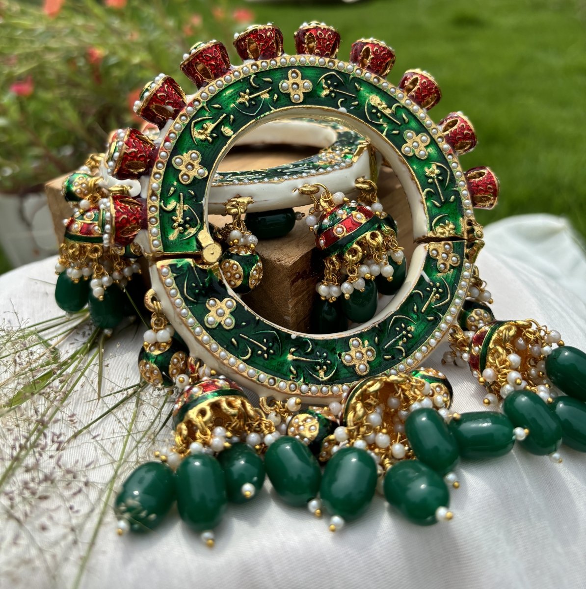 JADAU KUNDAN BANGLES WITH LATKAN - Pomcha Jaipur