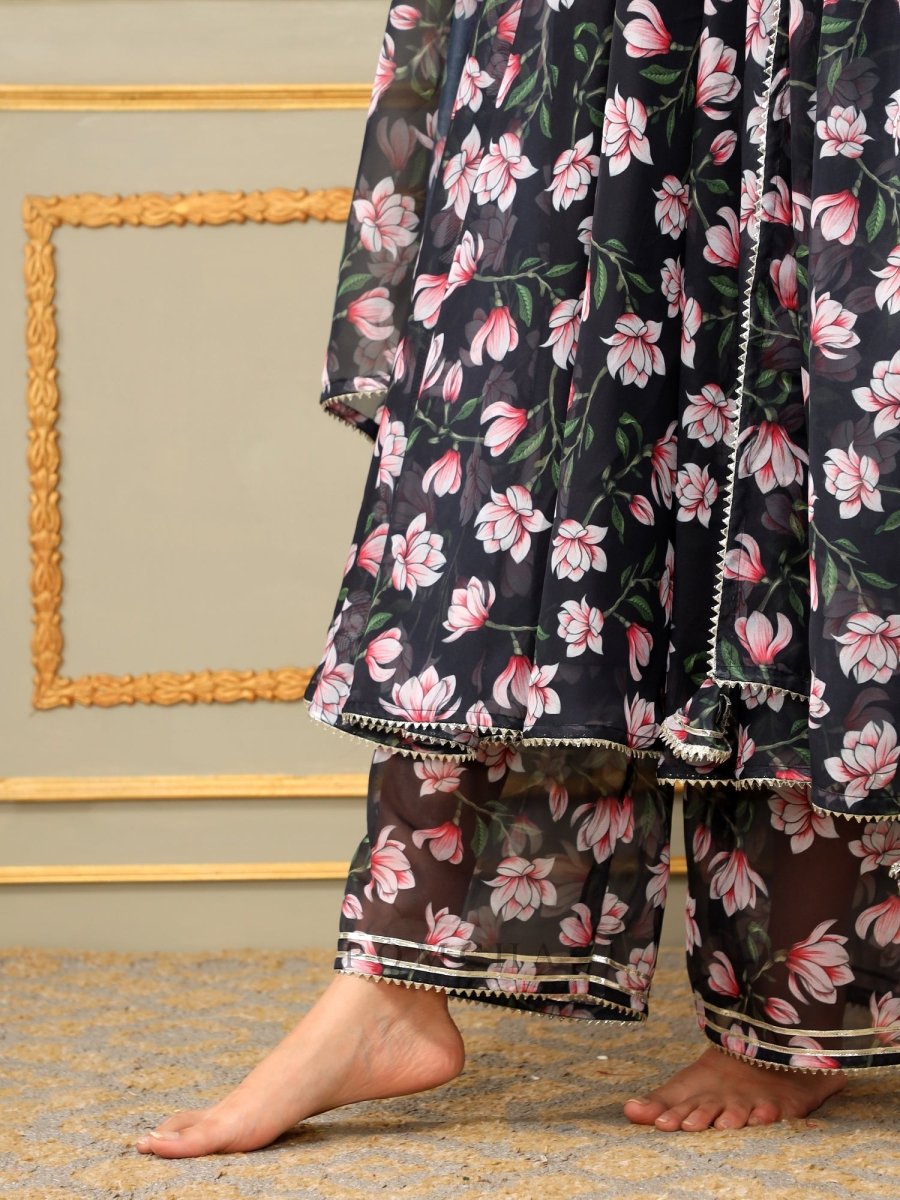 Saadgi a collection for today's women for everyday wear, outing or any occasion where you want to grace your presence with the touch of ethnic style. This is a beautiful Anarkali set embedded with gotta work & paired with organza dupatta.
