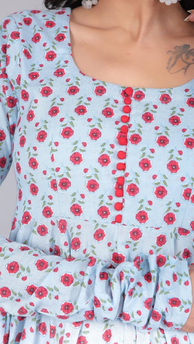 - SARA POWDER BLUE COTTON ANARKALI SET