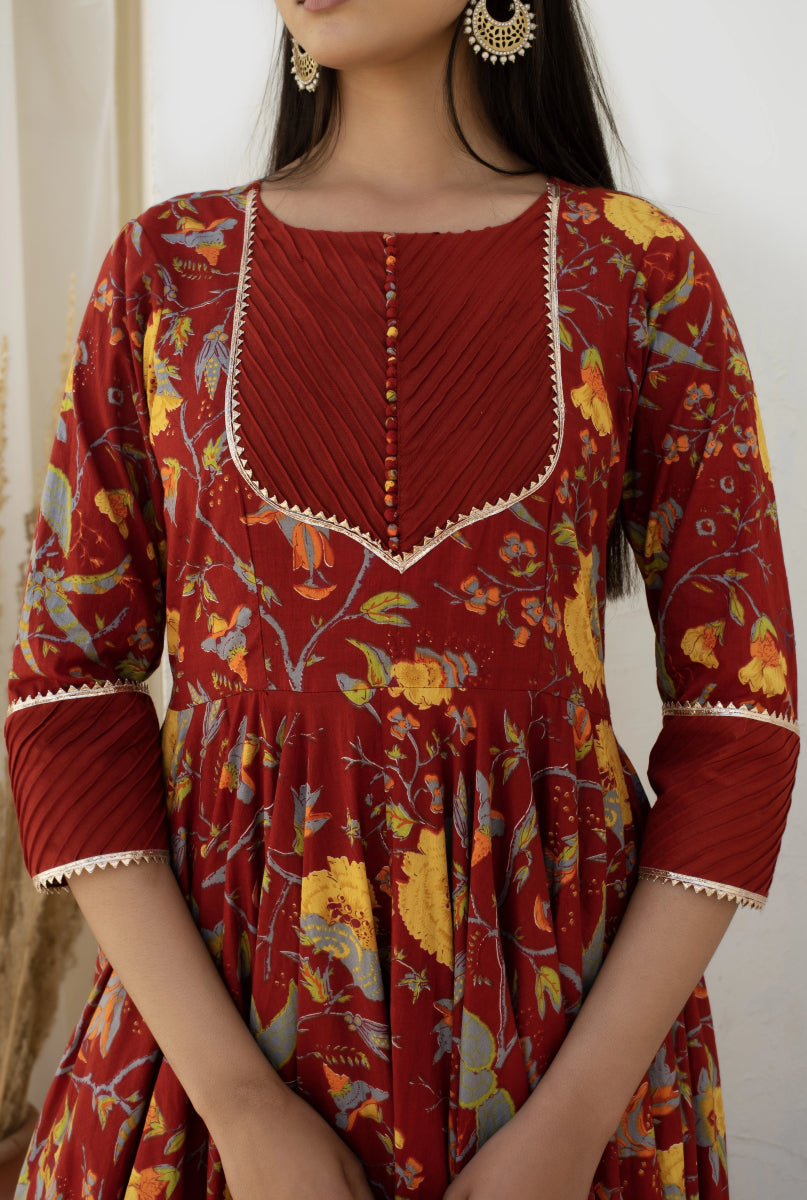 - CHHIPA BAZAR CHAND MAROON LONG COTTON ANARKALI WITH SOFT NET DUPATTA