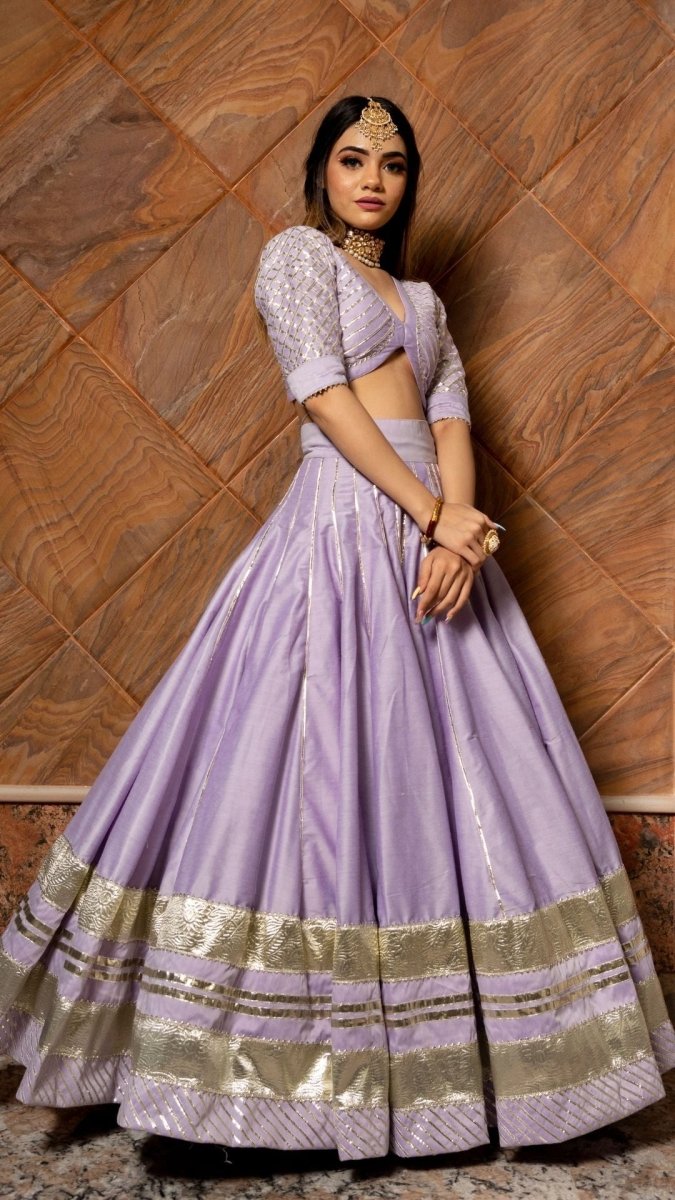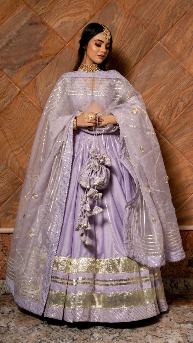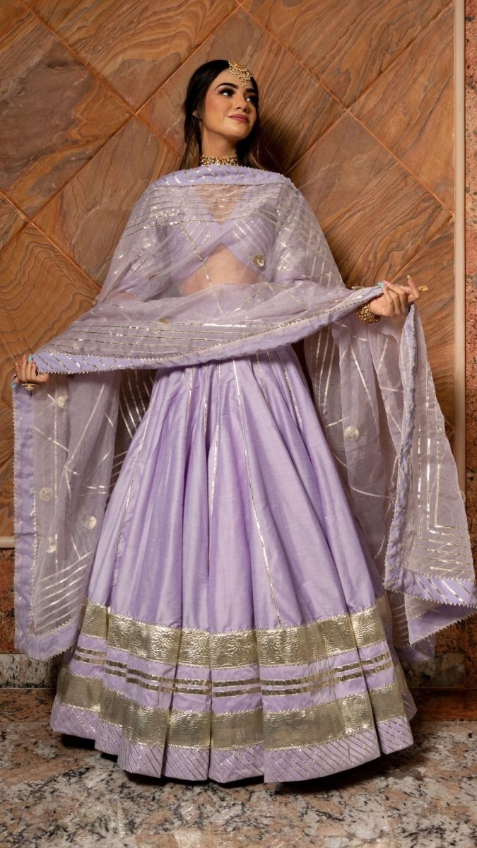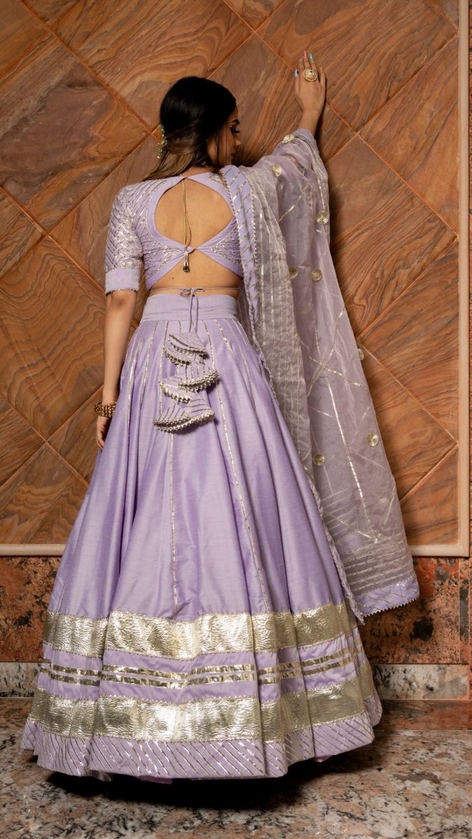 - IBADAT LAVENDER COTTON SILK LEHENGA WITH LAPPA WORK AND ORGANZA JAAL WORK DUPATTA SET