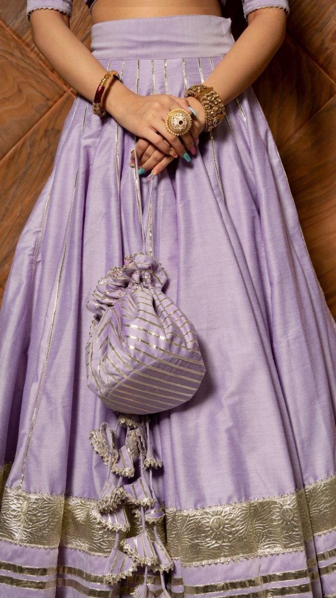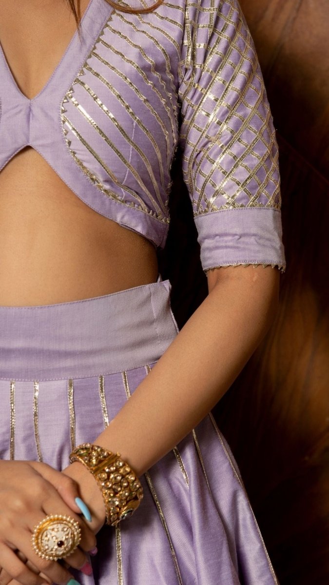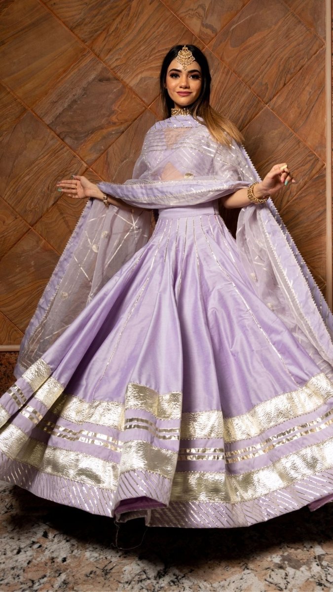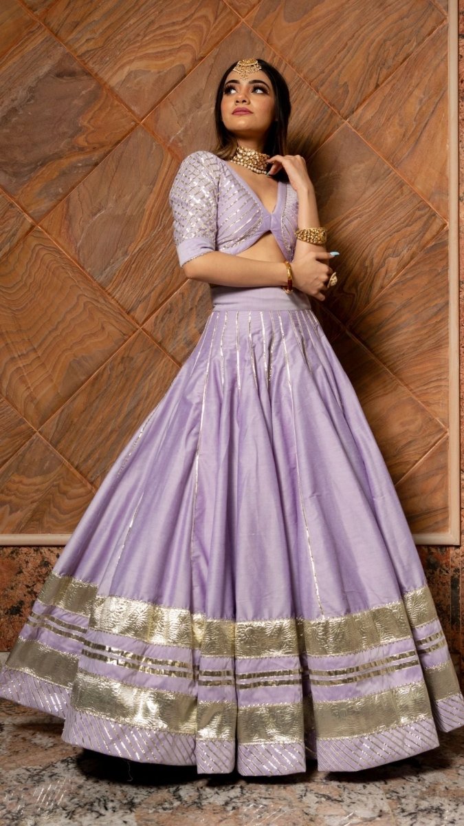 - IBADAT LAVENDER COTTON SILK LEHENGA WITH LAPPA WORK AND ORGANZA JAAL WORK DUPATTA SET