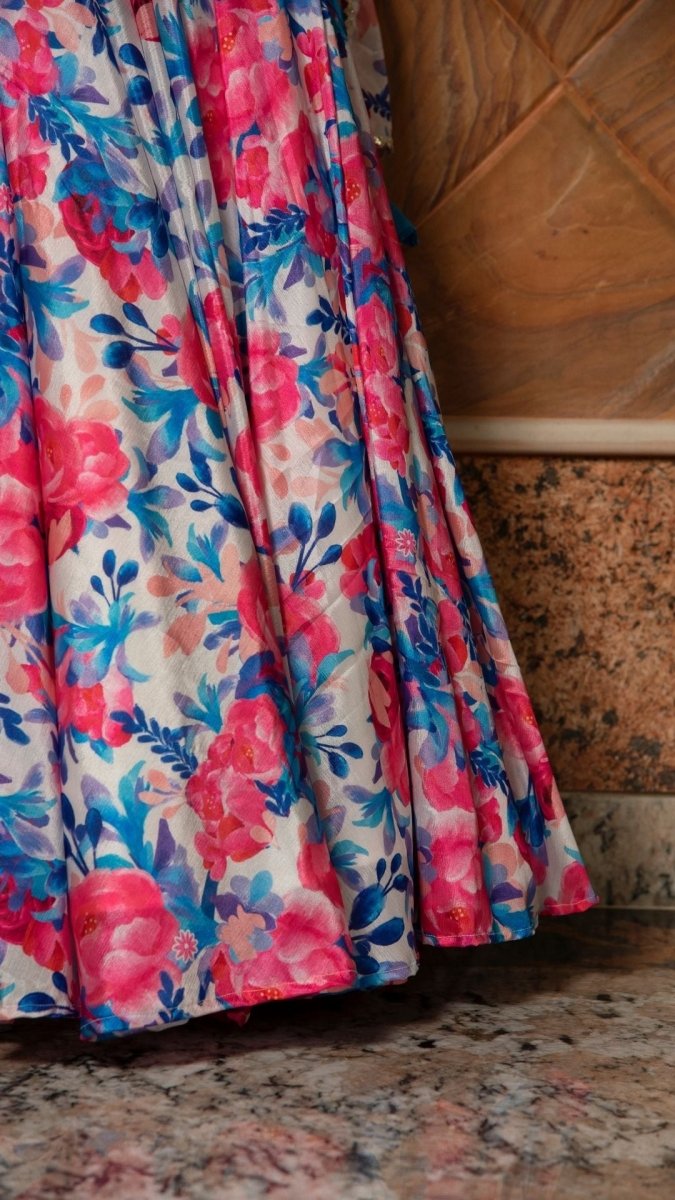 Nice color and cotton fabric overall. It fits perfectly and flare falls nicely. Got so many compliments!!! Shipping was fast and hassle free. Thanks POMCHA JAIPUR!!
