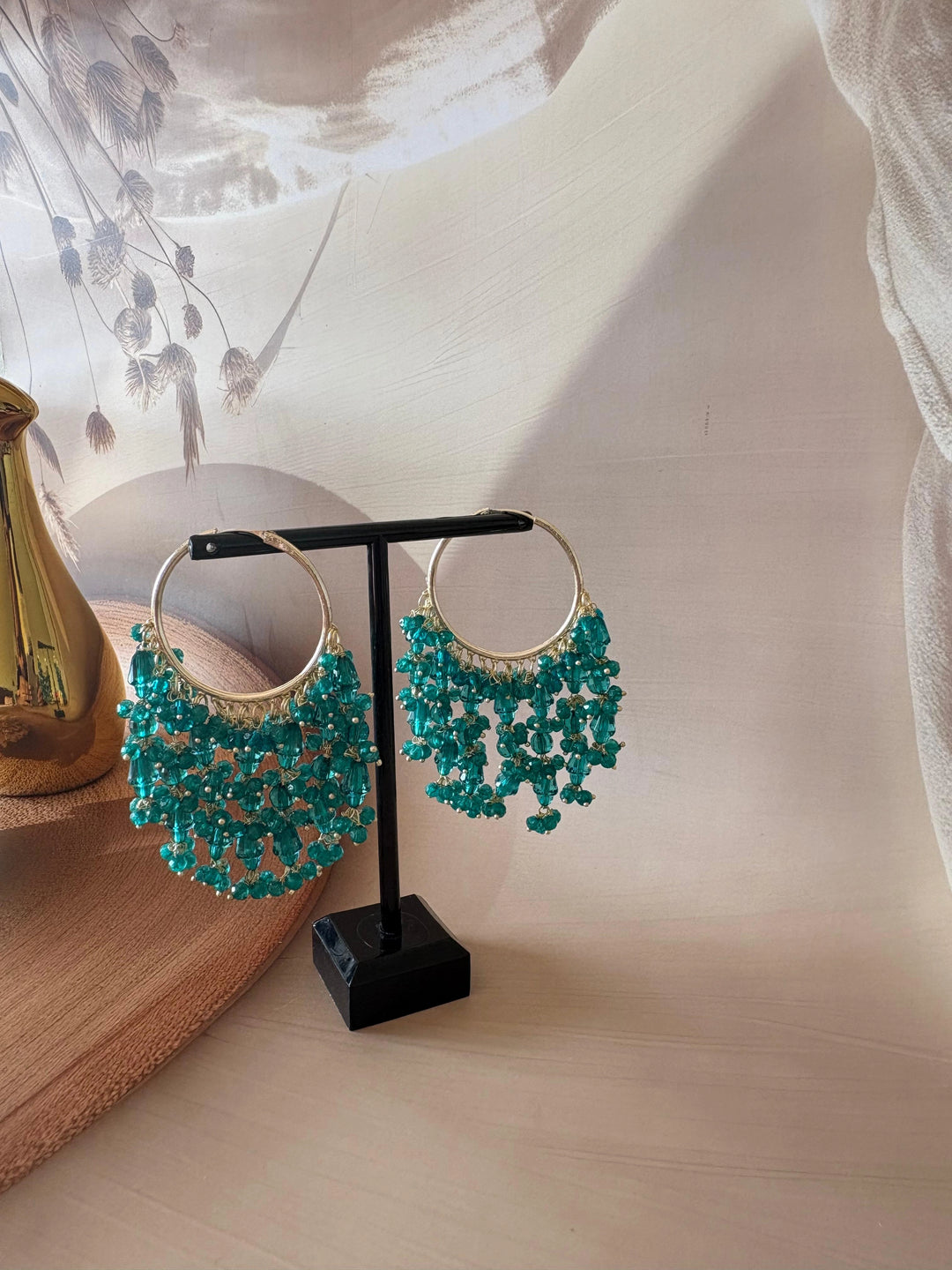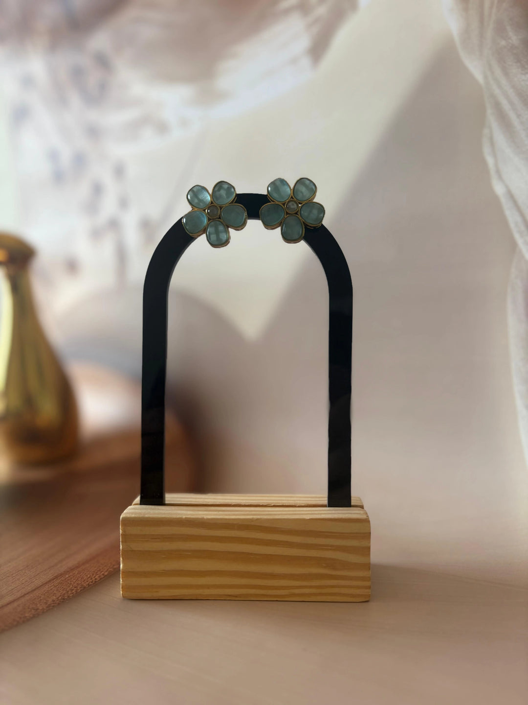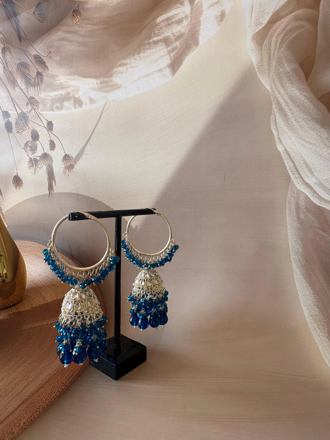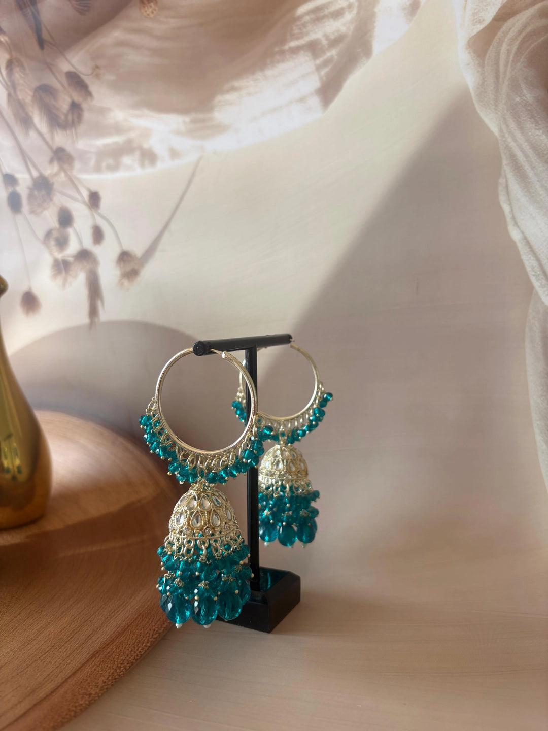 TEAL BLUE KUNDAN STUDDED JHUMKA SET