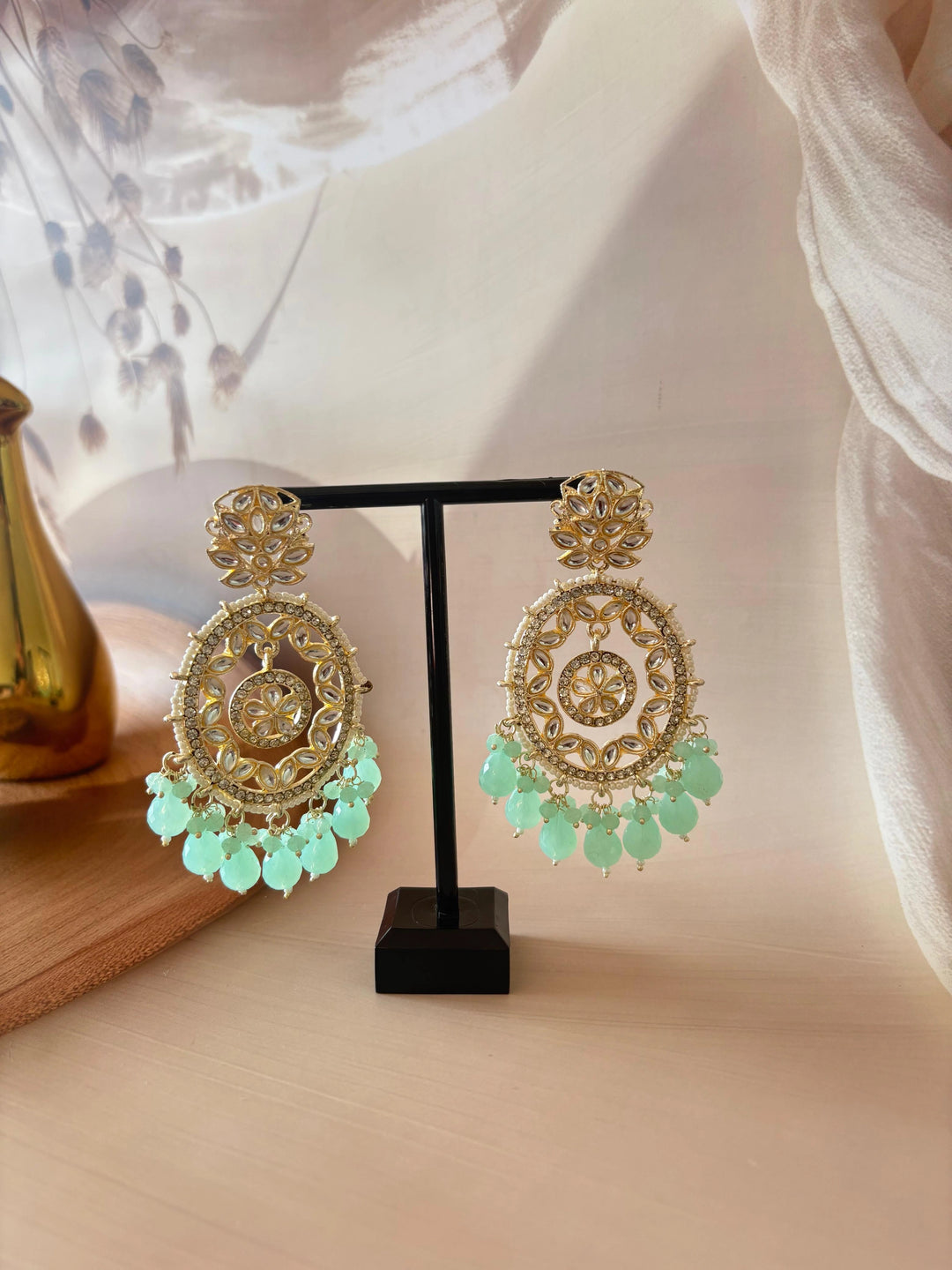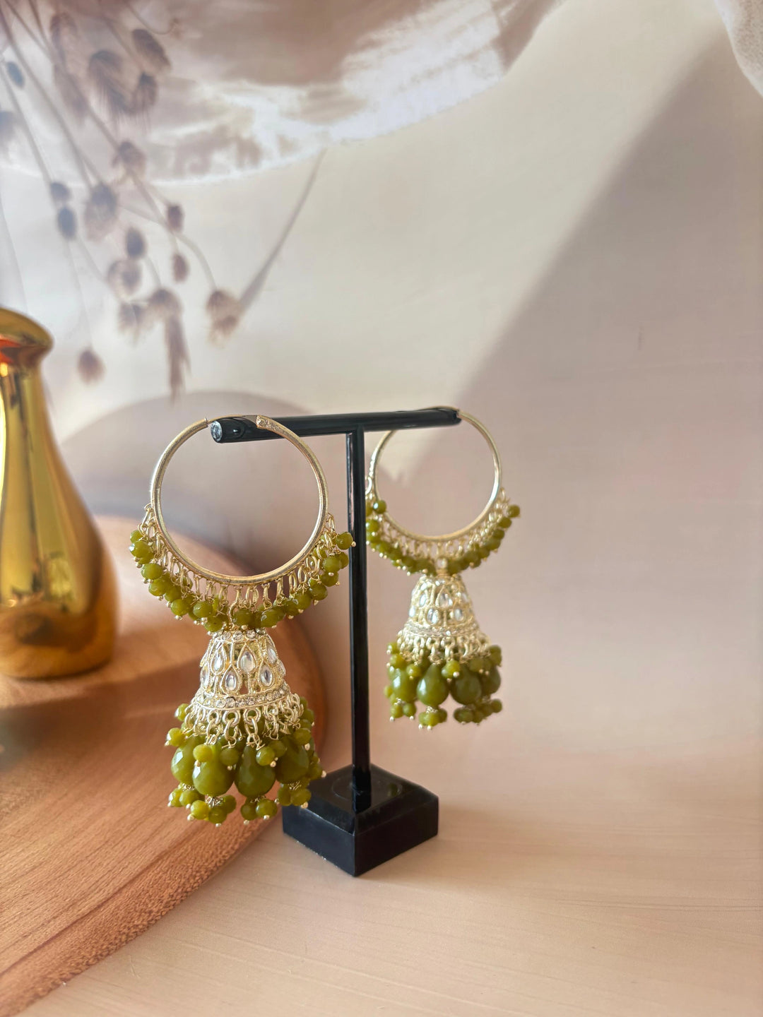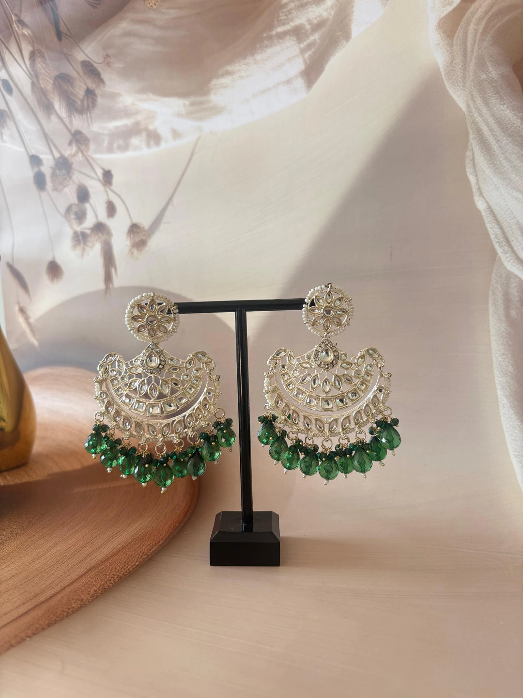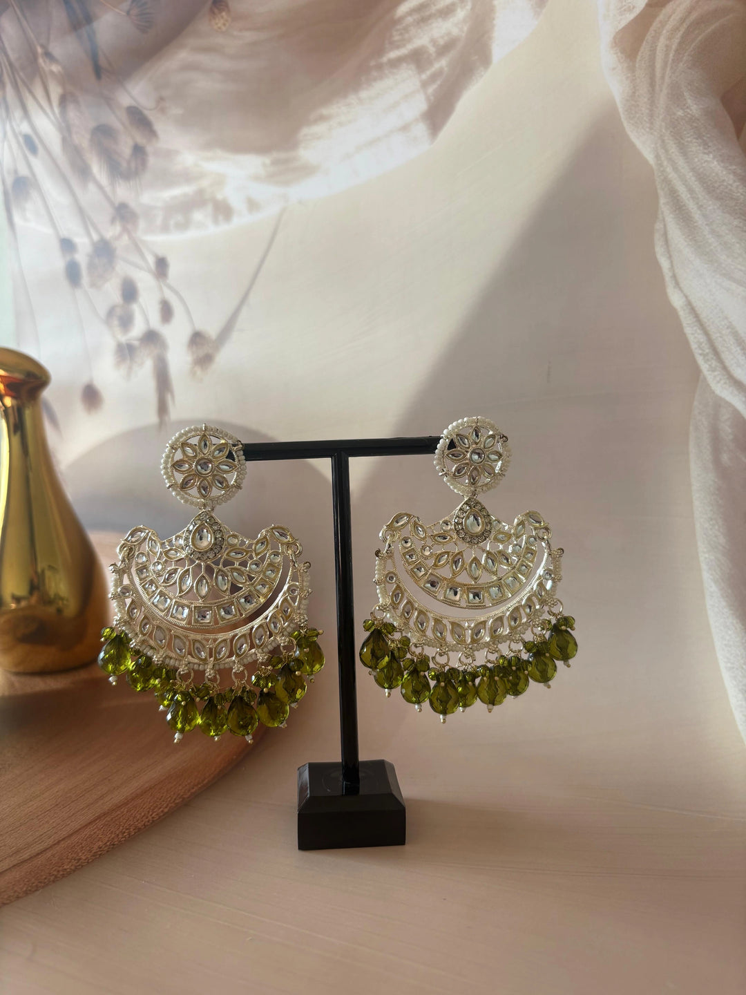 MEHANDI GREEN KUNDAN STUDDED CHANDBALI EARRING SET