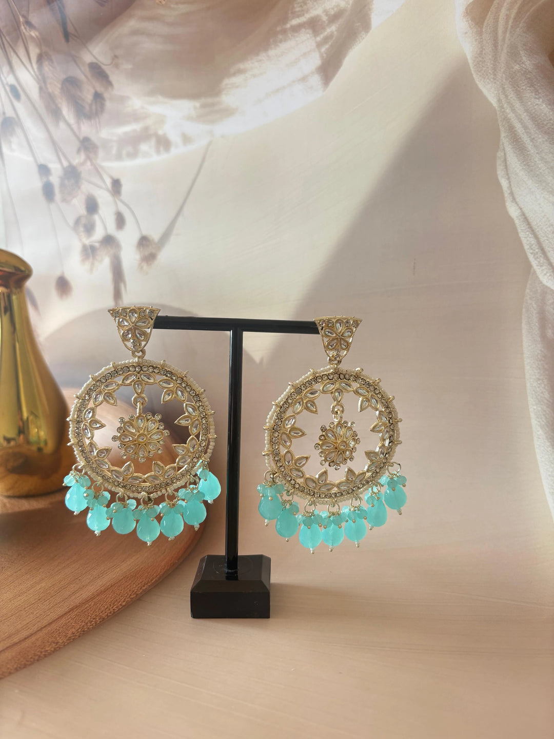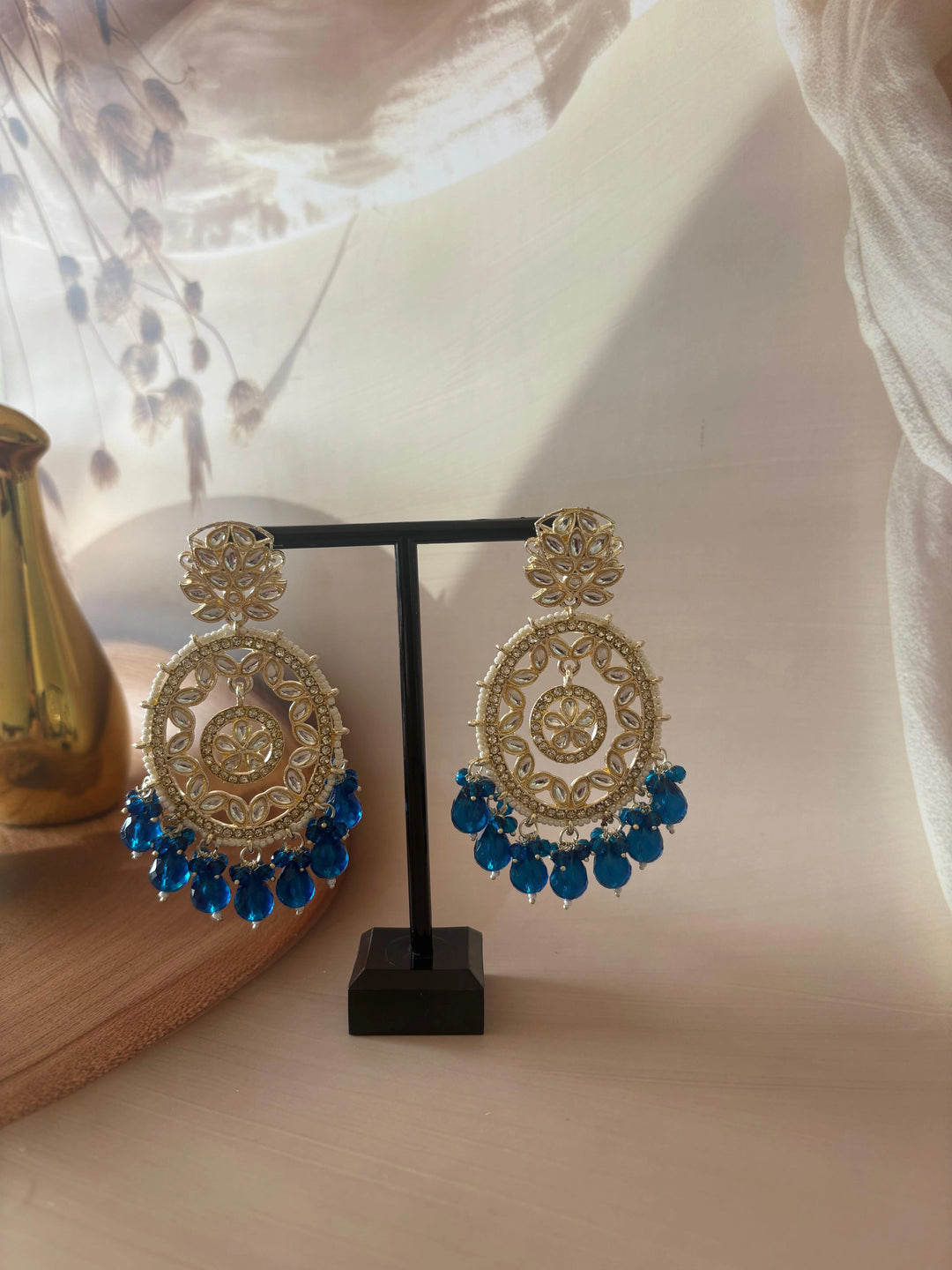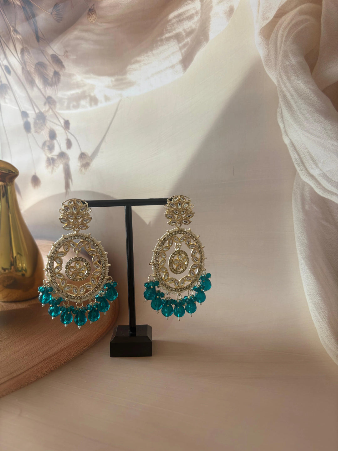 TEAL BLUE KUNDAN STUDDED CHANDBALI EARRING SET