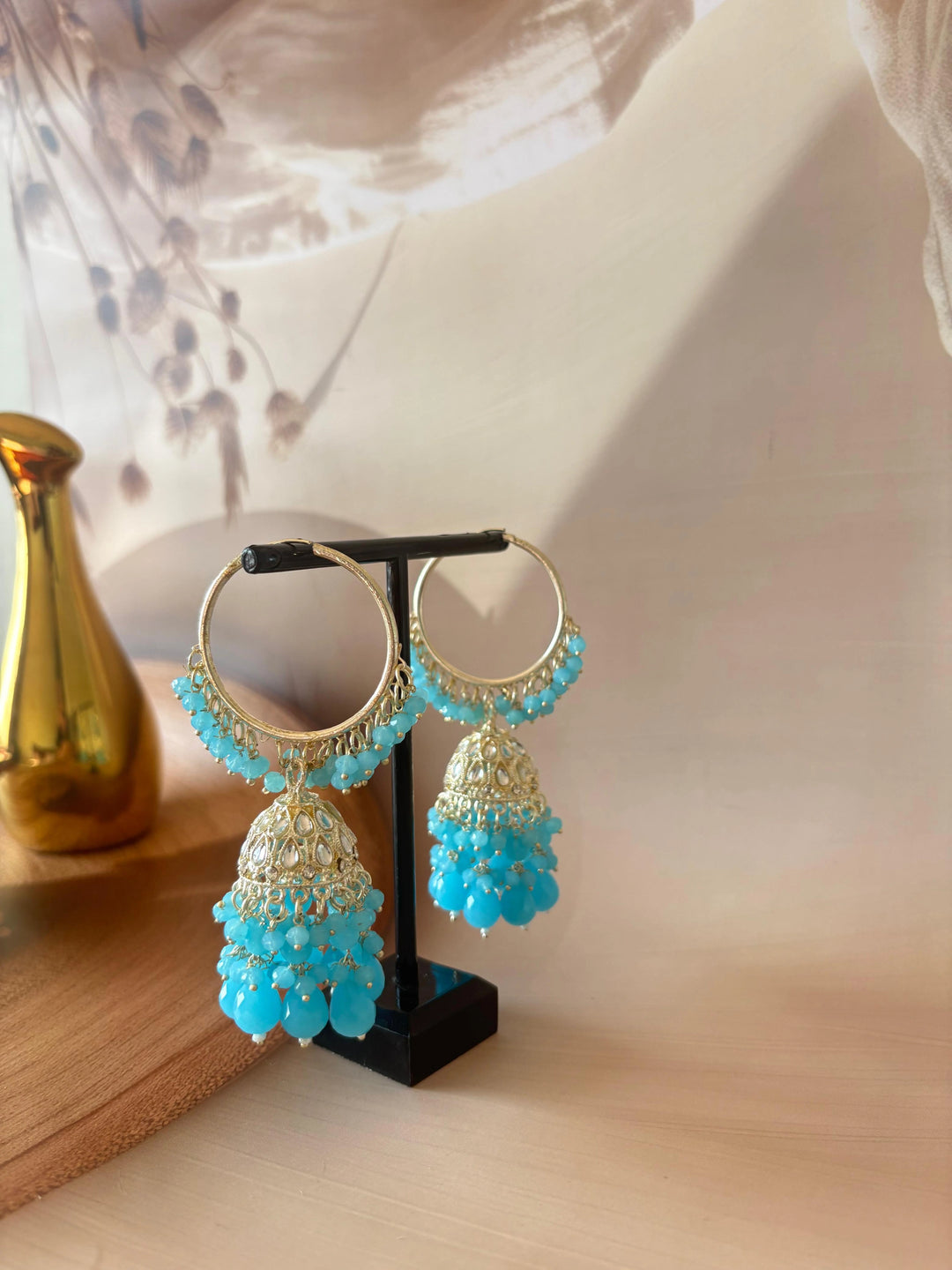 LIGHT BLUE PEARL DROP JHUMKA SET