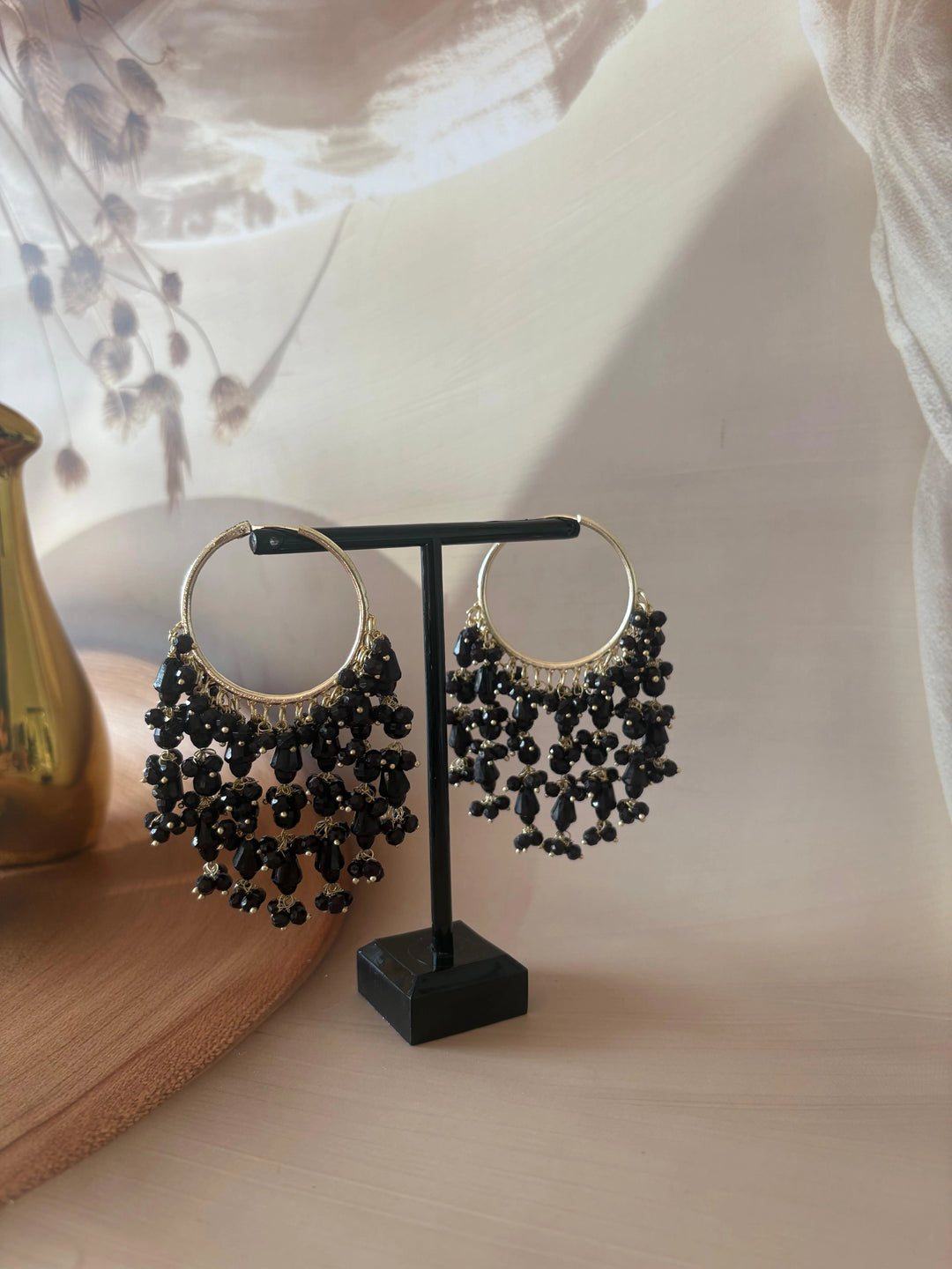 SITA GOLD TONE BLACK STONE PEARL BEADED EARRING SET