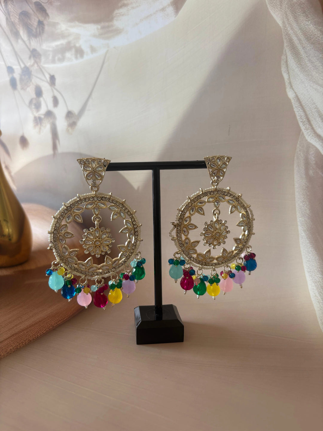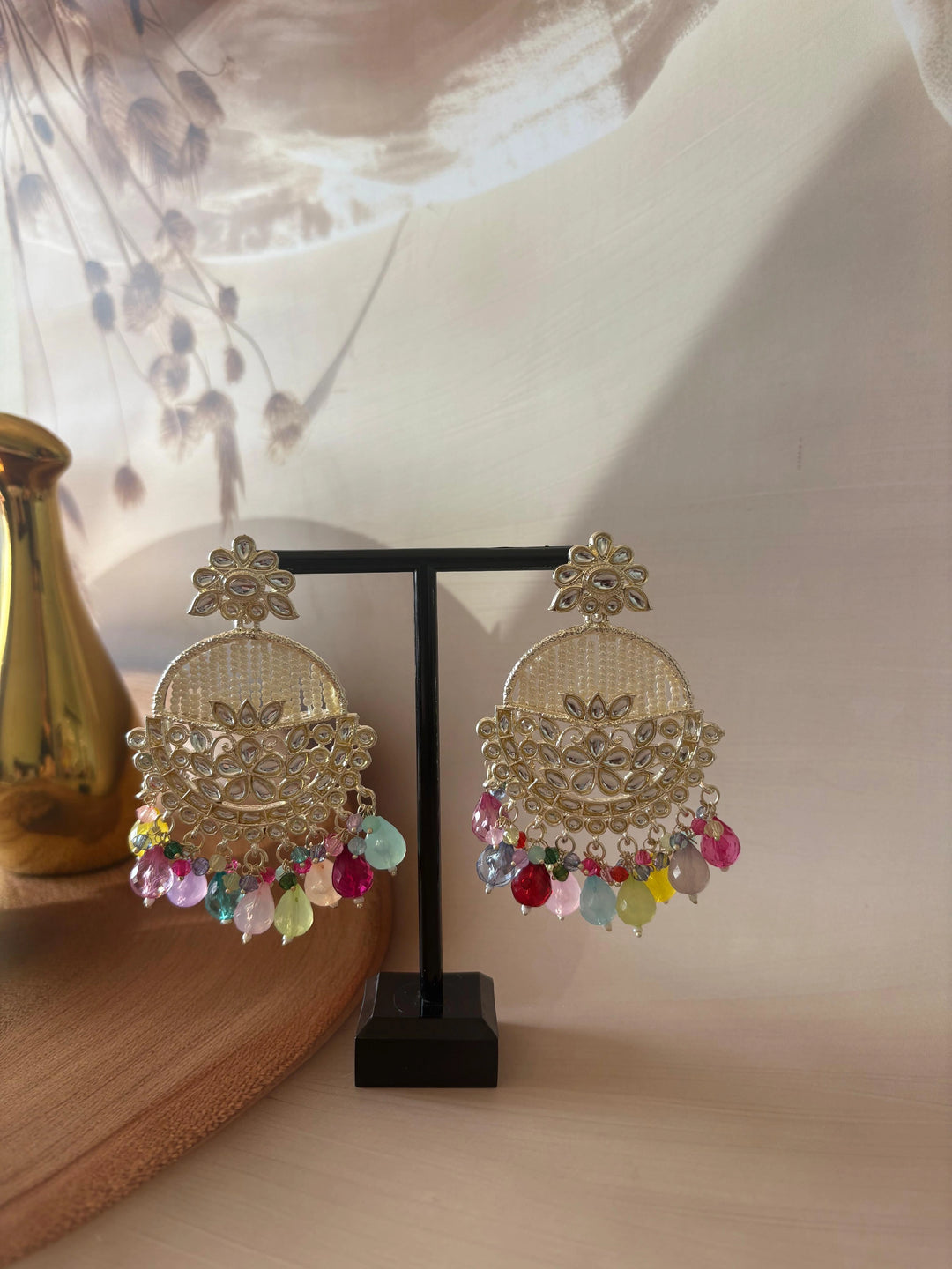 CHAND MULTICOLOR KUNDAN STUDDED EARRING SET