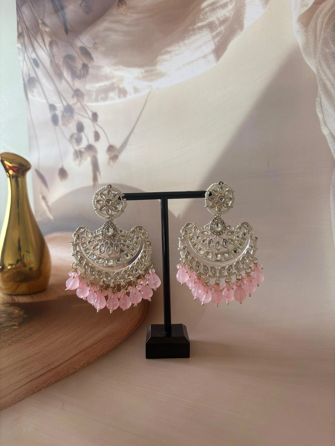 PINK KUNDAN STUDDED CHANDBALI EARRING SET