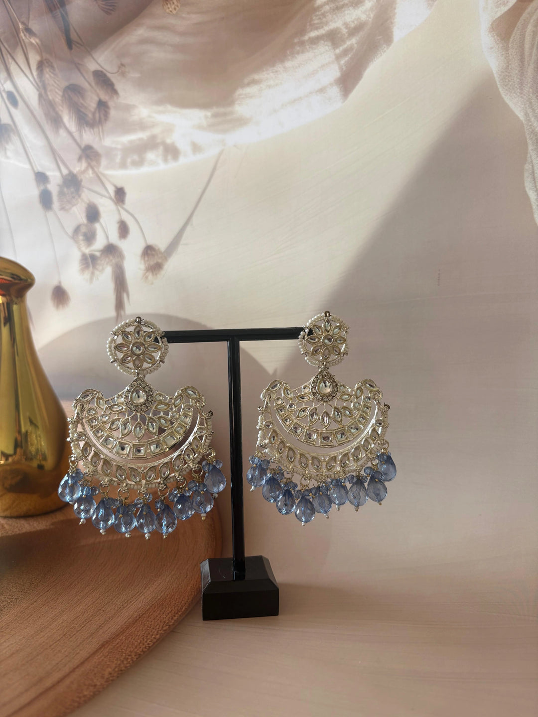 LIGHT BLUE KUNDAN STUDDED CHANDBALI EARRING SET