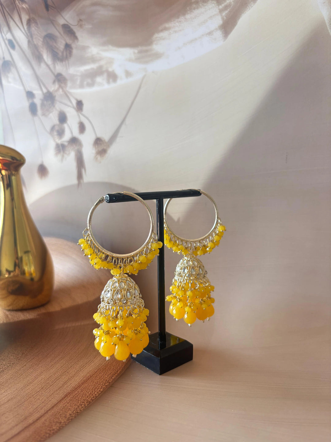 YELLOW KUNDAN STUDDED JHUMKA SET