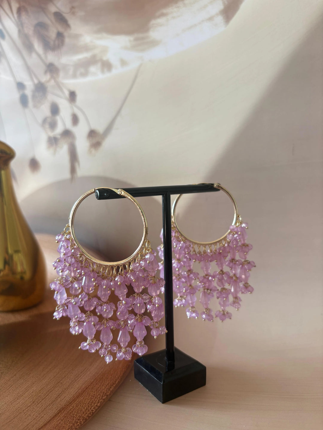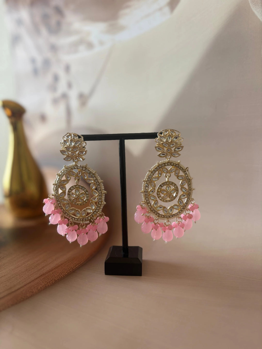 PINK KUNDAN MEENA STONE STUDDED CHANDBALI EARRING SET