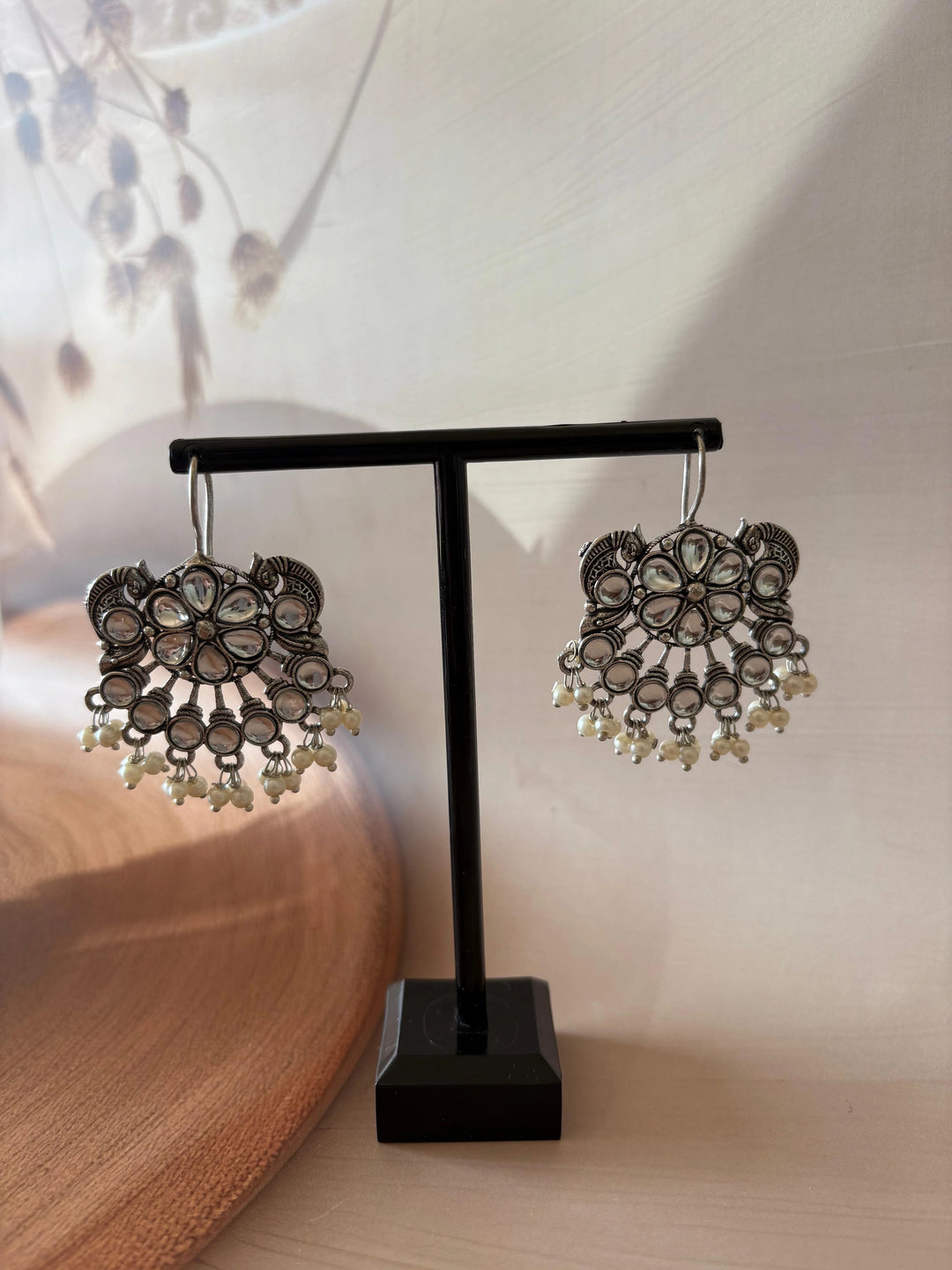 CHAND WHITE SILVER OXIDISED EARRING SET