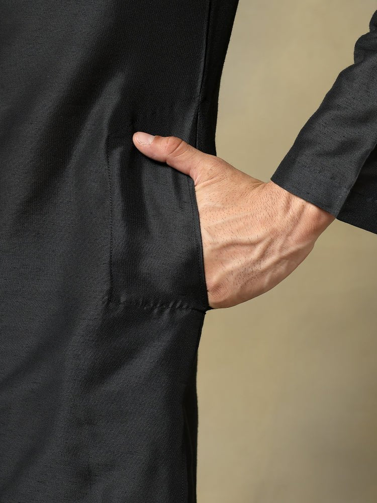 - CHAAP MEN'S BLACK COTTON SILK KURTA SET