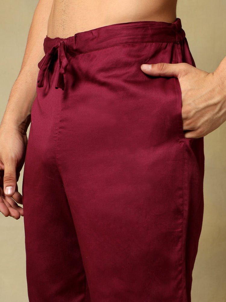 - CHAAP MEN'S DEEP MAROON DOLA SILK KURTA SET WITH BROCADE JACKET