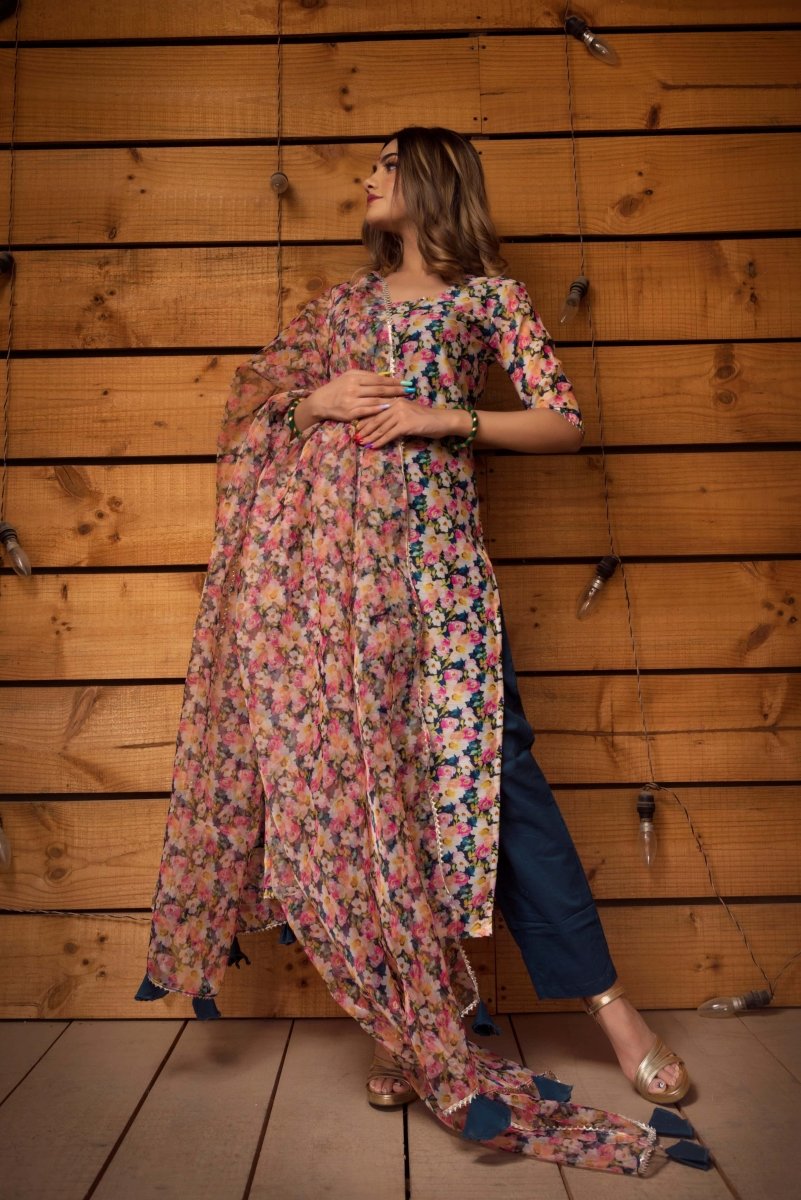 Introducing our stunning Mogra Modal Cotton Suit Set, a perfect blend of comfort and style. The kurta is crafted from soft and breathable modal cotton fabric, ensuring a comfortable fit. The pants are made from cotton, providing a relaxed and flattering silhouette. The set is completed with an organza dupatta, adding a touch of grace to the ensemble. The straight cut style of the kurta enhances the overall elegance. The elbow sleeves offer a chic and stylish look. The kurta has a length of 46 inches (customizable), while the pants measure 38 inches (customizable) in length. The accompanying dupatta measures 2.5 meters, allowing for versatile draping styles. Our model is wearing size XS, showcasing the impeccable fit and style of this suit set. Elevate your ethnic collection with our Mogra Modal Cotton Suit Set and make a fashion statement at any occasion.