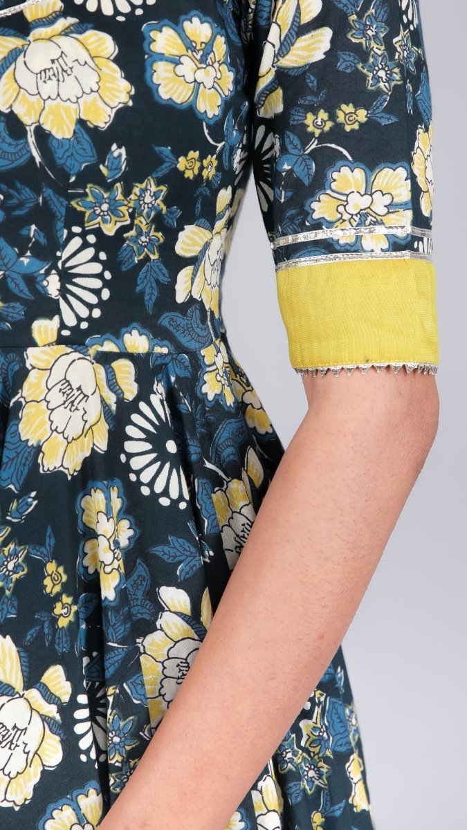 GAURI BLACK &YELLOW COTTON ANARKALI SET