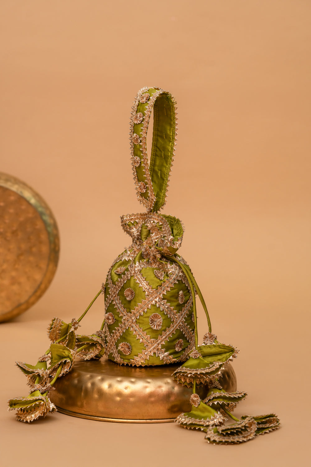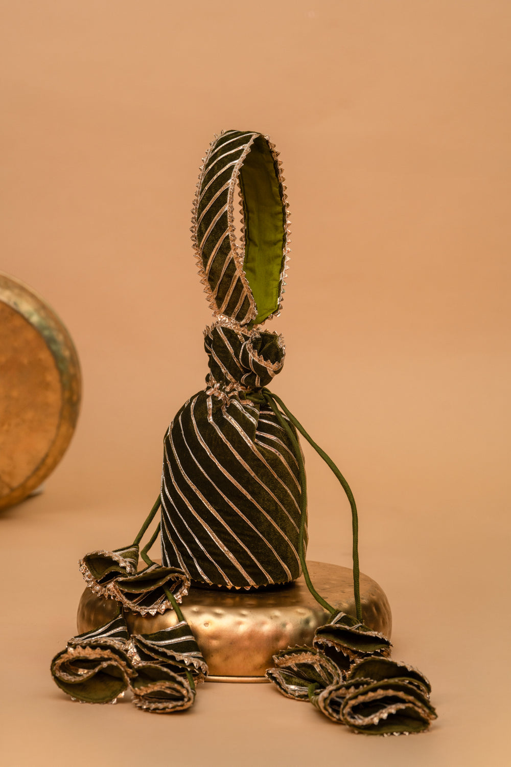 VELVET GREEN GOTA PATTI POTLI BAG