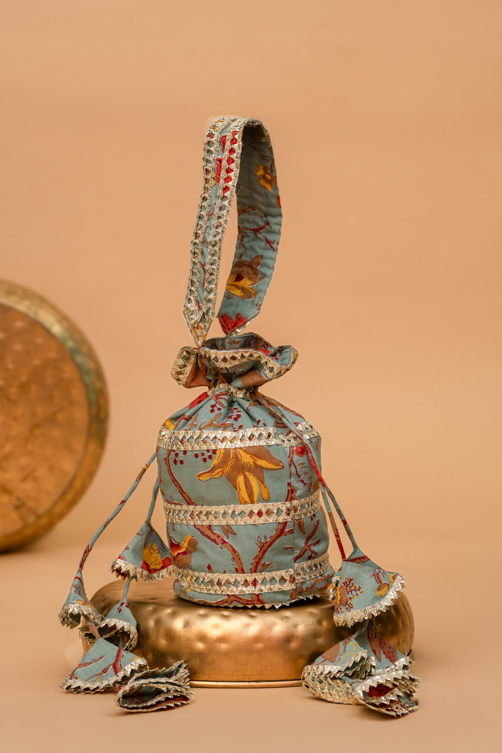FLORAL PRINTED GOTA PATTI POTLI BAG