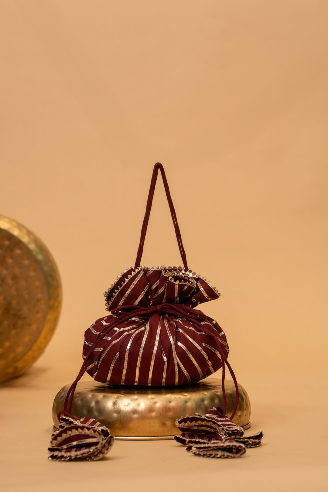 BROWN RANG GOTA PATTI POTLI BAG