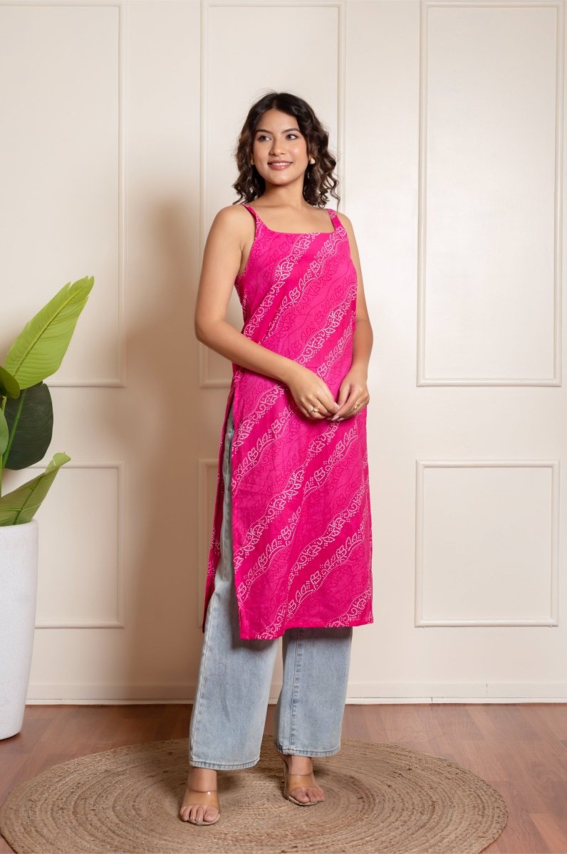 - RANG MALHAAR PINK BANDHEJ COTTON KURTI