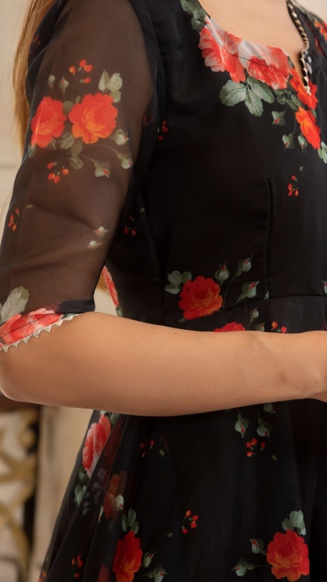 - RED AND BLACK ORGANZA ANARKALI SET WITH ORGANZA DUPATTA